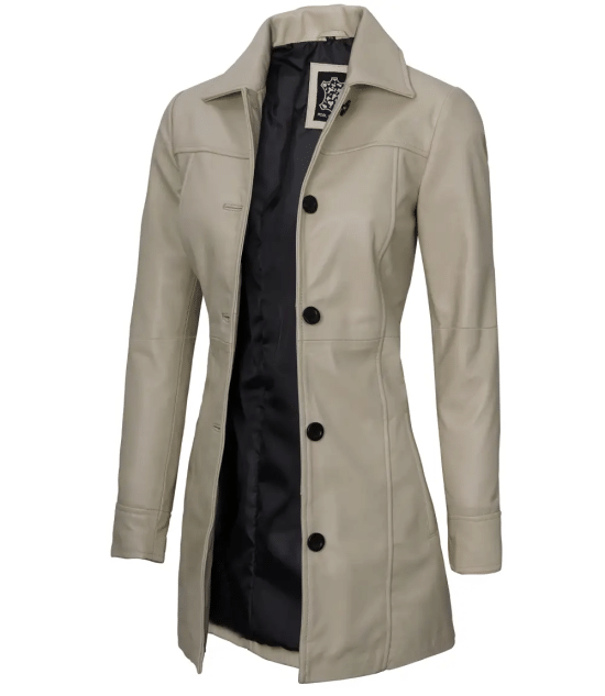 Exuding confidence and grace with every step with Women’s White Leather Car Coat. Shop the style with discount.