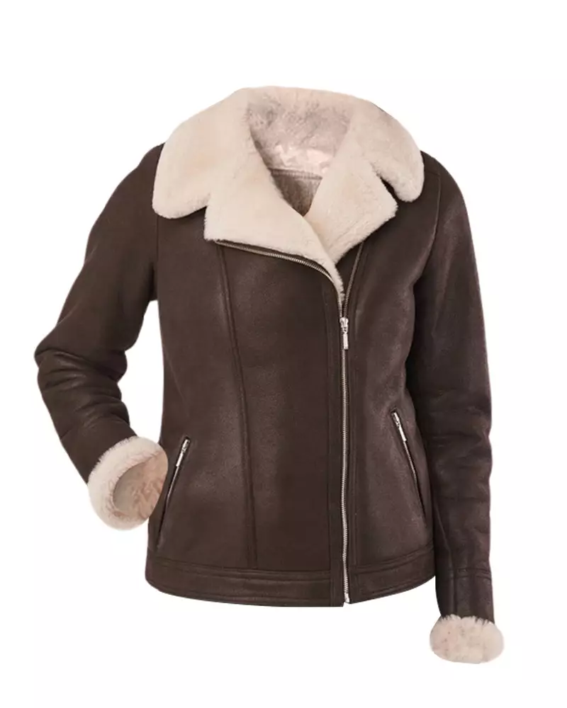 Women Brown B3 RAF Aviator Shearling Leather Jacket