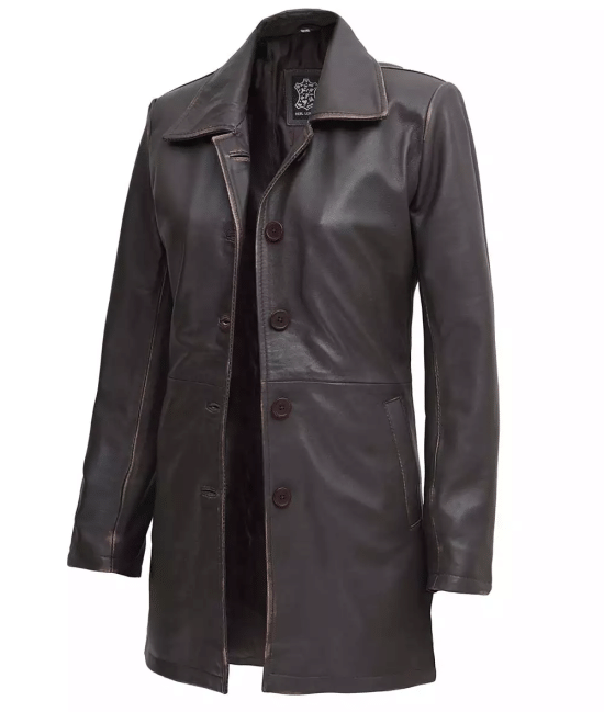 Step out in style with our Women’s Distressed Dark Brown Leather Car Coat. Crafted from genuine leather, it’s the perfect blend of classic elegance and modern flair. Ideal for any occasion, this coat promises warmth, comfort, and an unmatched style statement.